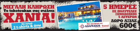 Με αγορά 2 T-Shirts και άνω από το tokotoukan.gr λαμβάνετε μέρος στην μεγάλη καλοκαιρινή κλήρωση στην οποία ένας υπερτυχερός θα κερδίσει 5ήμερες διακοπές στα Χανιά, στο πολυτελές ξενοδοχείο 5 αστέρων (ASTERION BEACH HOTEL & SUITES) συνολικής αξίας 600€, και άλλοι 5 τυχεροί θα κερδίσουν ο καθένας από 2 t-shirts της επιλογής τους εντελώς δωρεάν!
