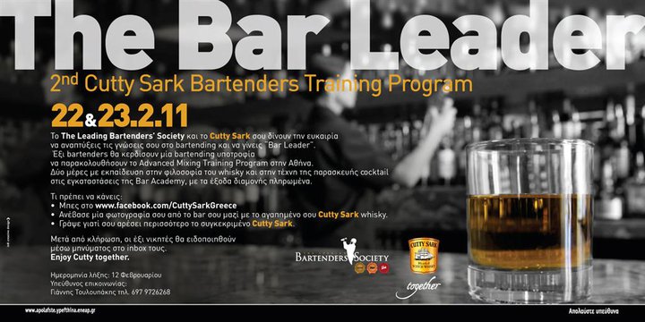 Το The Leading Bartenders Sociery και το Cutty Shark σου δίνουν την ευκαιρία να αναπτύξεις τις γνώσεις σου στο bartending και να γίνεις Bar Leader! Έξι Bartenders θα κερδίσουν μια bartending υποτροφία να παρακολουθήσουν το Advanced Mixing Training Program στην Αθήνα. Δύο μέρες με εκπαίδευση στην φιλοσοφία του Whisky και στην τέχνη της παρασκευής cocktail στις εγκαταστάσεις της Bar Academy, με τα έξοδα διαμονής πληρωμένα.