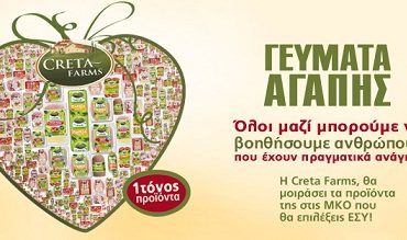 H Creta Farms μοιράζει 1 τόνο προϊόντα σε Μ.Κ.Ο. που το έχουν ανάγκη. Μπείτε στην εφαρμογή «Γεύματα Αγάπης» και ενισχύστε το έργο της οργάνωσης που επιλέγετε.