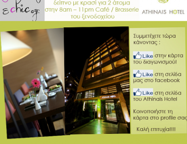 Το gocheapandchic και το Athinais Hotel σας κάνουν δώρο ένα σούπερ chic γεύμα στο ξενοδοχείο.
