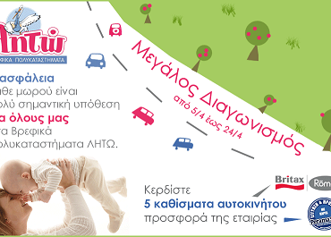 Τα Βρεφικά Πολυκαταστήματα ΛΗΤΩ διοργανώνουν διαγωνισμό και σας δίνουν τη δυνατότητα να κερδίσετε 5 καθίσματα αυτοκινήτου από μία από τις πιο αναγνωρισμένες και έγκυρες μάρκες στον κόσμο, την Romer / Britax*.