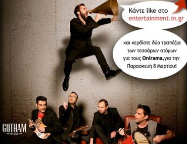 To in.gr και το Gotham City Stage, δίνουν την ευκαιρία σε δύο τυχερούς να κερδίσουν μια βραδιά στη μουσική σκηνή που εμφανίζεται το αγαπημένο του νεανικού κοινού συγκρότημα των Onirama, στην παράσταση “Back in Athens”.