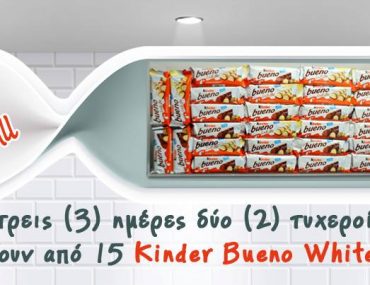 Η σελίδα Kinder Bueno Greece διοργανώνει διαγωνισμό και δίνει τη δυνατότητα σε 2 τυχερούς κάθε 3 μέρες να κερδίσουν 15 Kinder Bueno White.