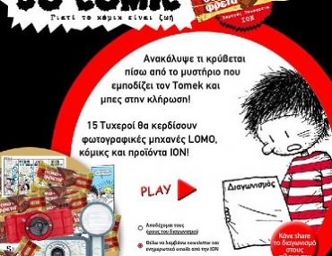 Η ION Sokofreta διοργανώνει διαγωνισμό και και σας καλεί να ανακαλύψετε τι βρίσκεται πίσω απ’ το μυστήριο που εμποδίζει τον Tomek και να μπείτε στην κλήρωση όπου 15 τυχεροί θα κερδίσουν φωτογραφικές μηχανές LOMO, κόμικς και προϊόντα ΙΟΝ!