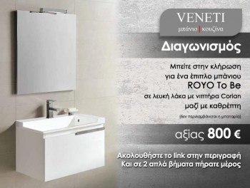 Η σελίδα Veneti διοργανώνει διαγωνισμό και σας δίνει τη δυνατότητα να κερδίσετε ένα έπιπλο μπάνιου ROYO To Be αξίας 800€.