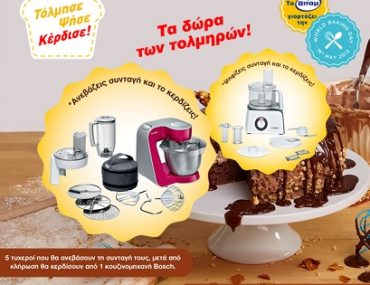Το Βιτάμ διοργανώνει διαγωνισμό και σας δίνει τη δυνατότητα να κερδίσετε 5 κουζινομηχανές (κλήρωση ανάμεσα σε αυτούς που συνεισφέρουν συνταγές) και 1 πολυμίξερ (κλήρωση ανάμεσα σε αυτούς που κάνουν Like σε συνταγές) της εταιρείας Bosch.