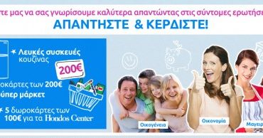 Η σελίδα Επιθυμίες διοργανώνει διαγωνισμό και σας δίνει τη δυνατότητα να κερδίσετε ένα ψυγείο, μία ηλεκτρική κουζίνα, ένα πλυντήριο πιάτων, 5 δωροεπιταγές αξίας 200€ η κάθε μία προς εξαργύρωση στα super market Βερόπουλος και 5 δωροεπιταγές αξίας 100€ η κάθε μία προς εξαργύρωση στα καταστήματα Hondos Center.