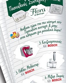 Η σελίδα flora.com.gr διοργανώνει διαγωνισμό και σας δίνει τη δυνατότητα να κερδίσετε 3 κουζινομηχανές BOSCH, 3 ράβδοι μπλέντερ BOSCH και 4 μίξερ χειρός BOSCH.