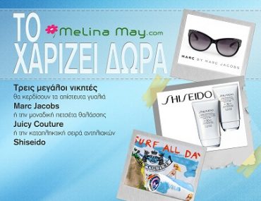Ο διαγωνισμός του καλοκαιριού ξεκίνησε από το MelinaMay.com. Οι νικητές θα είναι 3 και τα δώρα είναι τα εξής: Για τον 1ο γυαλιά ηλίου Marc Jacobs, για τον 2ο πετσέτα θαλάσσης Juicy Couture και για τον 3ο σειρά αντηλιακών Shiseido.