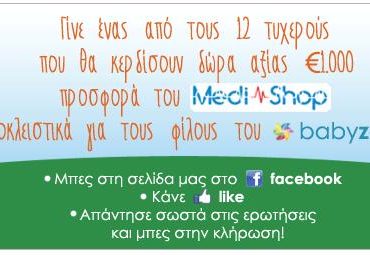 Το babyzone.gr διοργανώνει διαγωνισμό στο facebook και δίνει τη δυνατότητα σε 12 τυχερούς να κερδίσουν δώρα συνολικής αξίας 1000€ από το MediShop.