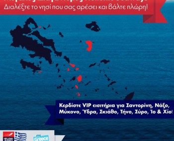 Το mygreece.travel σας ταξιδεύει VIP με τα πλοία της Hellenic Seaways σε Σαντορίνη, Νάξο, Μύκονο, Ύδρα, Σκιάθο, Τήνο, Σύρο Ίο και Χίο. Κερδίστε ένα ταξίδι για 2 άτομα με ΟΛΑ τα έξοδα πληρωμένα! Με 3 διανυκτερεύεσεις, δείπνα και VIP εισιτήρια με τα πλοία της Hellenic Seaways. διοργανώνει διαγωνισμό και σας δίνει τη δυνατότητα να κερδίσετε ένα σετ παιδικές πετσέτες, με δύο τεμάχια, μία μπάνιου και μία προσώπου.
