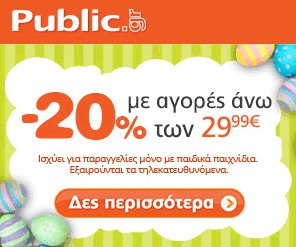 20% έκπτωση σε απίθανα παιχνίδια και λαμπάδες μόνο στο Public! Προλάβετε τώρα τις καλύτερες προσφορές!