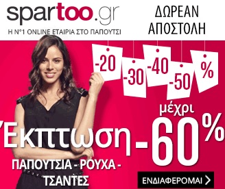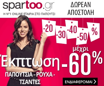 Κέρδισε από την παρακάτω προσφορά του Spartoo και κάνε έξυπνες και φθηνές αγορές. Κουπόνι για έκπτωση έως 60% και επιπλέον 10% έκπτωση