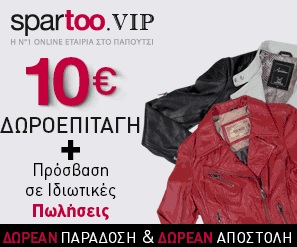 Το spartoo.gr, το Νο 1 site πώλησης παπουτσιών στο διαδίκτυο σας καλεί στον νέο προνομιακό χώρο του! Όσοι κάνετε την εγγραφή σας θα κερδίσετε μια δωροεπιταγή 10€.