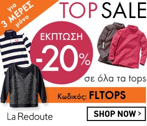 Η La Redoute προσφέρει εκπτωτικό κουπόνι για 20% έκπτωση σε όλα τα tops!