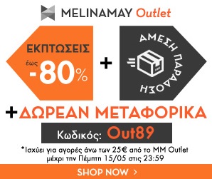Super κουπόνι για έκπτωση έως 80%, δωρεάν μεταφορικά και άμεση παράδοση στα προϊόντα της κατηγορίας Outlet στο MelinaMay.com!