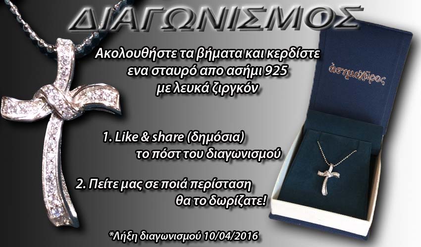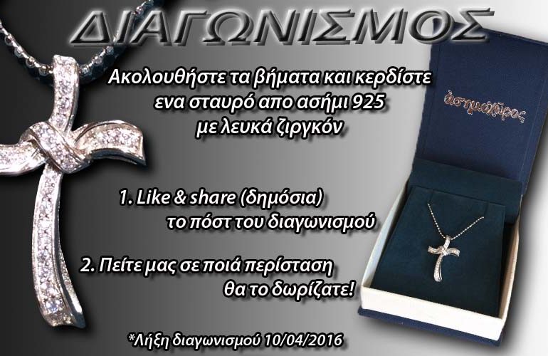 Ο Ασημοχώρος διοργανώνει διαγωνισμό και σας δίνει τη δυνατότητα να κερδίσετε ένα σταυρό απο ασήμι 925 με λευκά ζιργκόν!