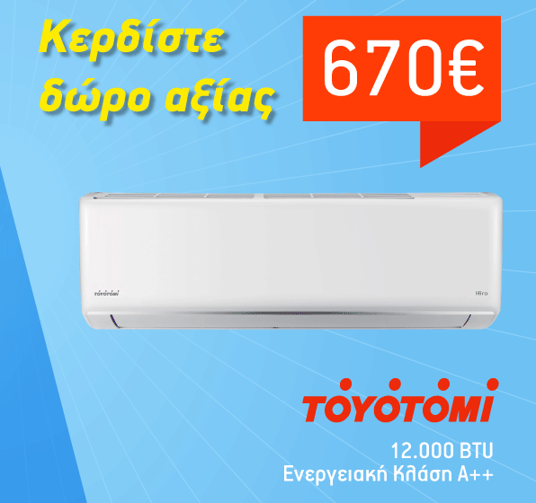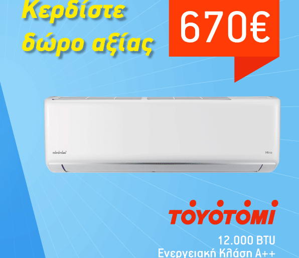 H Mega Euronics διοργανώνει διαγωνισμό και σας δίνει τη δυνατότητα να κερδίσετε ένα κλιματιστικό Toyotomi inverter αξίας 670€!
