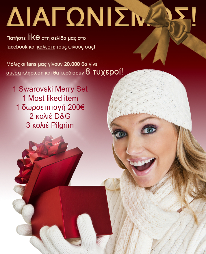 Το deesee.gr διοργανώνει διαγωνισμό στο facebook και σας δίνει τη δυνατότητα να κερδίσετε 1 Swarovski Merry Set, 1 Most liked item, 1 δωροεπιταγή 200€, 2 κολιέ D&G και 3 κολιέ Piligrim.