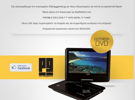 Το 123 Play Games.gr διοργανώνει διαγωνισμό και σας δίνει τη δυνατότητα να κερδίσετε ένα φορητό DVD Player Αξίας 100€.