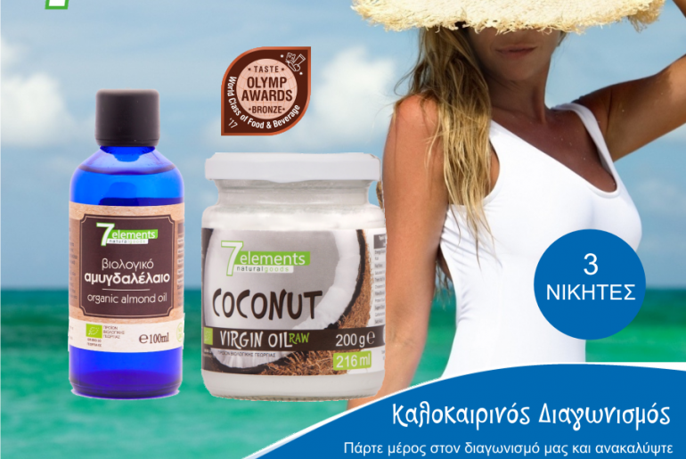 H 7elements διοργανώνει διαγωνισμό και δίνει τη δυνατότητα σε 3 τυχερούς να κερδίσουν από μία συσκευασία του βραβευμένου Βιολογικού Παρθένου Λαδιού Καρύδας 200gr και μία συσκευασία Βιολογικού Αμυγδαλέλαιου 100ml!