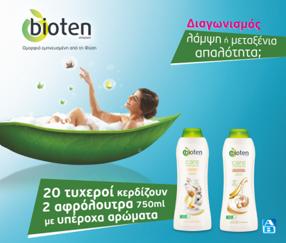 Τα ΑΒ Βασιλόπουλος διοργανώνουν διαγωνισμό και δίνουν τη δυνατότητα σε 20 νικητές να κερδίσουν από 2 αφρόλουτρα Bioten, 750ml.