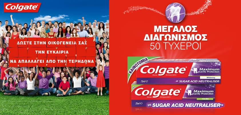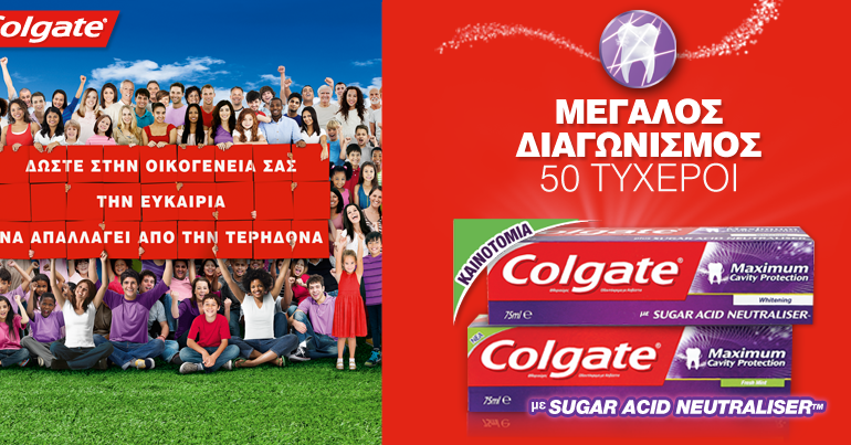 Τα ΑΒ Βασιλόπουλος διοργανώνουν διαγωνισμό και δίνουν τη δυνατότητα σε 50 τυχερούς να κερδίσουν τις 2 νέες Colgate Maximum Cavity Protection με Sugar Acid Neutraliser™ Fresh Mint & Whitening.