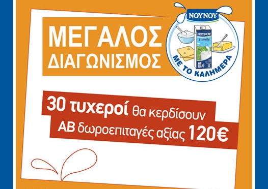 Η ΑΒ Βασιλόπουλος διοργανώνει διαγωνισμό και δίνει τη δυνατότητα σε 30 τυχερούς να κερδίσουν από 20 επιταγές ΑΒ ο καθένας, συνολικής αξίας 120€ (20×6€ μέσω πίστωσης 4.000 πόντων ανά νικητήρια κάρτα ΑΒ)!