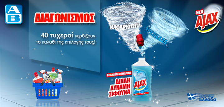 Τα ΑΒ Βασιλόπουλος διοργανώνουν διαγωνισμό και δίνουν τη δυνατότητα σε 40 τυχερούς να κερδίσουν από 1 δωροκουτί με τα 7 προϊόντα AJAX που οι ίδιοι διάλεξαν.