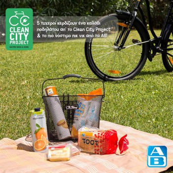 Τα ΑΒ Βασιλόπουλος διοργανώνουν “Διαγωνισμός για ποδηλάτες!” και σας δίνουν τη δυνατότητα να κερδίσετε 5 καλάθια ποδηλάτου από το Clean City Project και ένα σετ πικ νικ που αποτελείται από AB φιλέτο γαλοπούλας & τυρί edam 400gr, ΑΒ ψωμί του τοστ σταρένιο (350gr), φυσικός χυμός ΑΒ πορτοκάλι (1lt), ποτήρια νερού διαφανή (50 τμχ) 290ml, 365 γεμιστά μπισκότα σοκολάτας (500gr).