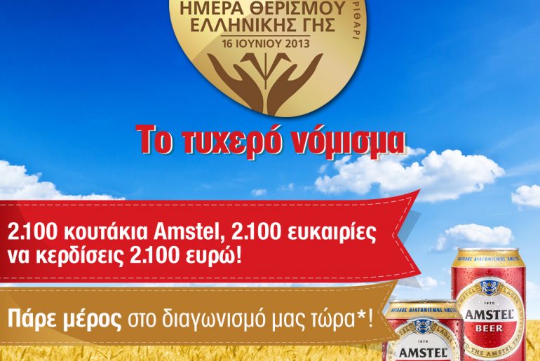 Ο ΑΒ Βασιλόπουλος διοργανώνει διαγωνισμό και σας προσφέρει 2.100 κουτάκια Amstel! 88 τυχεροί θα κερδίσουν από ένα κιβώτιο μπίρες Amstel.