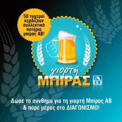Τα ΑΒ Βασιλόπουλος διοργανώνουν διαγωνισμό και δίνουν τη δυνατότητα σε 50 τυχερούς να κερδίσουν από ένα σετ 4 συλλεκτικών ποτηριών μπίρας.