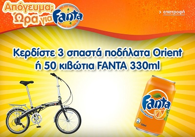 Τα ΑΒ Βασιλόπουλος διοργανώνουν διαγωνισμό και σας δίνουν τη δυνατότητα να κερδίσετε 50 κιβώτια με 24 συσκευασίες FANTA 330ml και 3 σπαστά ποδήλατα.