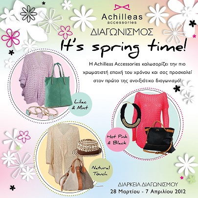 Η Achilleas Accessories καλωσορίζει την πιο χρωματιστή εποχή του χρόνου και σας προσκαλεί στον πρώτο της ανοιξιάτικο διαγωνισμό! Επιλέξτε το set της προτίμησής σας και μπείτε στην κλήρωση για να το κερδίσετε!