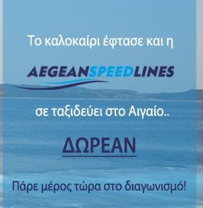 H Aegean Speed Lines διοργανώνει διαγωνισμό και σας δίνει τη δυνατότητα να κερδίσετε 2 εισιτήρια μετ’επιστροφή για εσάς και το/τη φίλο/η σας όλο τον Ιούλιο!