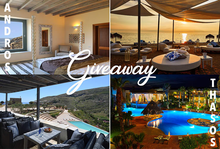 2 τυχεροί θα κερδίσουν 4 ημέρες στην Άνδρο στο ξενοδοχείο Aegea Blue Cycladic Resort και 4 ημέρες στη Θάσο στο ILIO MARE Beach Hotel.