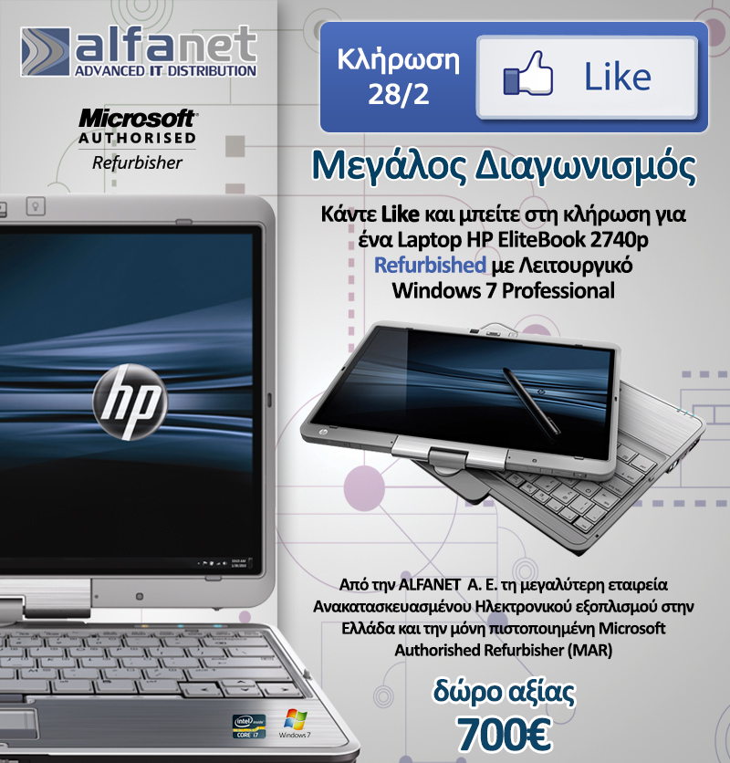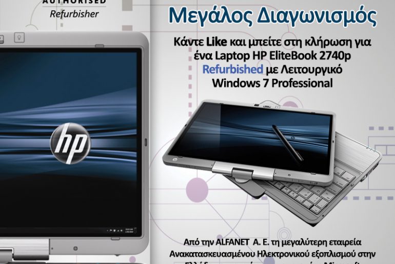 Η Alfanet SA διοργανώνει διαγωνισμό και σας δίνει τη δυνατότητα να κερδίσετε ένα Refurbished Hp EliteBook 2740p!