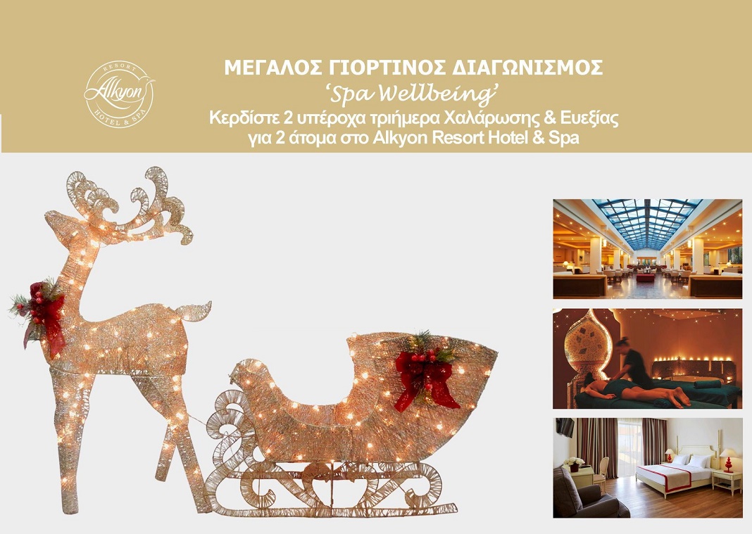 Το Alkyon Resort Hotel & Spa στο Βραχάτι Κορινίας διοργανώνει διαγωνισμό και δίνει τη δυνατότητα σε 2 τυχερά ζευγάρια να κερδίσουν από 2 διανυκτερεύσεις σε Junior Suite, με Πλούσιο Ελληνικό πρωινό, Δείπνο στον μπουφέ του Sky Bar Restaurant και πακέτο Spa Center!
