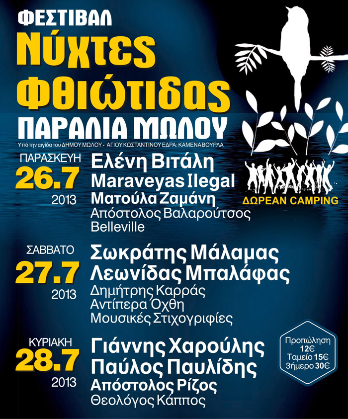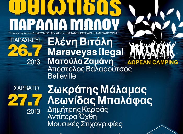 Το allaboutmusic.gr εξασφάλισε για εσάς 2 διπλές προσκλήσεις, αξίας 30€ η μια, για το Φεστιβάλ “Νύχτες Φθιώτιδας” που θα διεξαχθεί στην παραλία Μώλου από τις 26 μέχρι και τις 28 Ιουλίου!