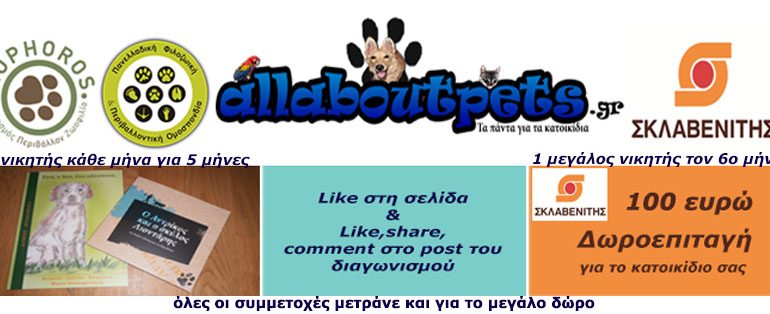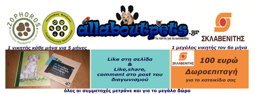 Το allaboutpets.gr διοργανώνει διαγωνισμό και σας δίνει τη δυνατότητα να κερδίσετε φιλοζωικά βιβλία για παιδιά και δωροεπιταγή 100 ευρώ από το Σκλαβενίτη!