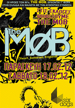 Ένα από τα πιο μυθικά rock συγκροτήματα της δεκαετίας του ’80 κάνει reunion με τα αυθεντικά μέλη κι επισκέπτεται 1η φορά την Αθήνα για δύο εκρηκτικές συναυλίες. Οι The MOB μας υπενθυμίζουν σε καιρούς που το χρειαζόμαστε, τι ακριβώς εστί “Συναυλία Διαμαρτυρίας”. Κάντε Like στη σελίδα της Alterground Productions και πάρτε μέρος στην κλήρωση όπου τρεις τυχεροί θα κερδίσουν από μία πρόσκληση για την εμφάνιση του σπουδαίου συγκροτήματος για την Παρασκευή 17 Φεβρουαρίου στο Six D.O.G.S.