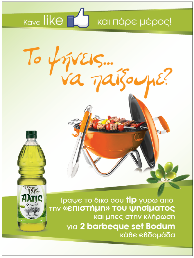 Νέος διαγωνισμός Άλτις ελαιόλαδο στο facebook με δώρο 2 καταπληκτικά barbeque set Bodum.