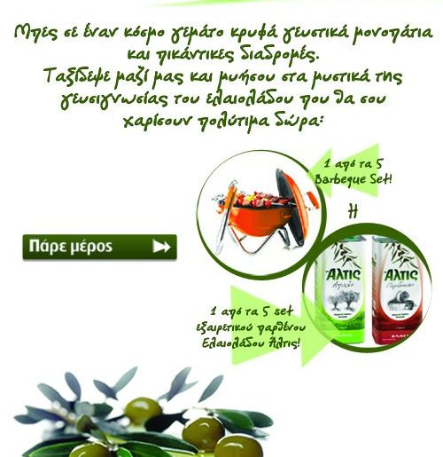 Το Άλτις ελαιόλαδο διοργανώνει διαγωνισμό στο facebook και σας δίνει τη δυνατότητα να κερδίσετε 5 bbq sets και 5 (πέντε) 10L ελαιόλαδο Άλτις (5L εξαιρετικό παρθένο ελαιόλαδο Απαλό και 5L εξαιρετικό παρθένο ελαιόλαδο Παραδοσιακό).