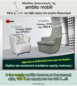 Διαγωνισμός από την Ambito Mobili με δώρο μια πολυθρόνα STS αξίας 450€ και μια πολυθρόνα KING αξίας 370€