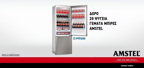 Η σελίδα της Amstel διοργανώνει διαγωνισμό και δίνει τη δυνατότητα σε 20 νικητές να κερδίσουν από έναν ψυγειοκαταψύκτη PITSOS μοντέλο PKNB49AI20 γεμάτο με 5 κιβώτια μπίρες Amstel.