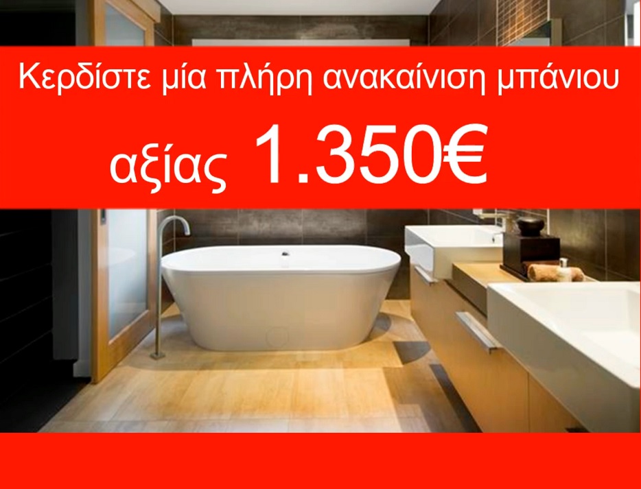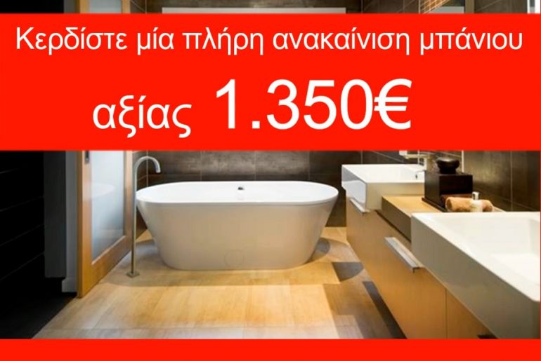 H Τεχνική εταιρεία μελετών και κατασκευών Αναδομώ διοργανώνει διαγωνισμό και σας δίνει τη δυνατότητα να κερδίσετε μία ολοκληρωμένη ανακαίνιση μπάνιου, αξίας 1.350€!