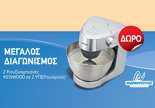 Τα Super Market Ανδρικόπουλος διοργανώνουν διαγωνισμό και δίνουν τη δυνατότητα σε 2 τυχερούς να κερδίσουν από μία κουζινομηχανή Κenwood!