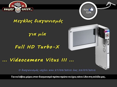 Το Angrysheep διοργανώνει διαγωνισμό και σας δίνει τη δυνατότητα να κερδίσετε μια Full HD Turbo-X Videocamera Vitus III.