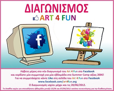 Το Art 4 Fun διοργανώνει διαγωνισμό και σας δίνει τη δυνατότητα να κερδίσετε μία συμμετοχή για μία εβδομάδα στο Summer Camp 2012 αξίας 200€.