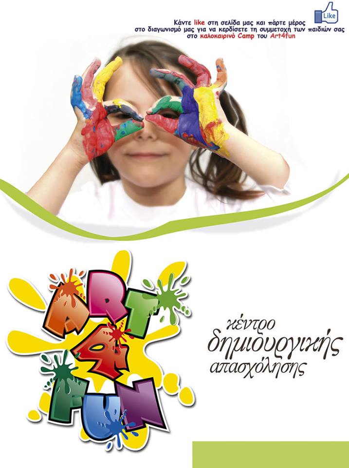 Το Κέντρο Δημιουργικής Απασχόλησης Art4Fun διοργανώνει διαγωνισμό και σας δίνει τη δυνατότητα να κερδίσετε τη συμμετοχή μίας εβδομάδας στο Καλοκαιρινό Camp.